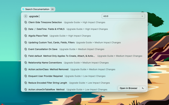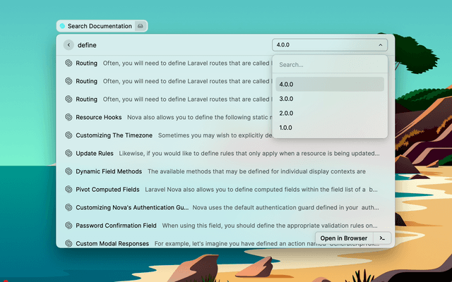 Search through Laravel Nova documentation directly from raycast.
