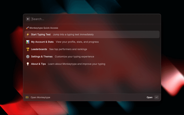 Quick access to Monkeytype sections - typing tests, stats, leaderboards, and settings