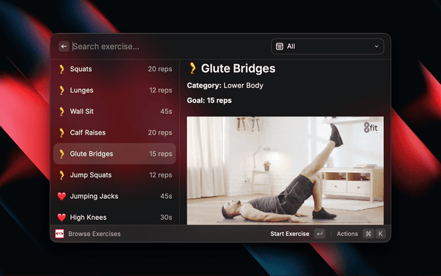 Start a random micro-workout. Perfect for quick breaks during your workday.