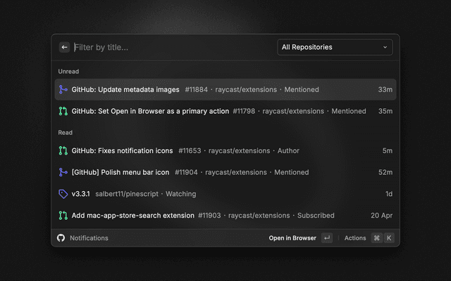Double-check that you have enabled the correct settings for your organizations on the GitHub Oauth page to ensure that Raycast is able to show you the data from those repositories.