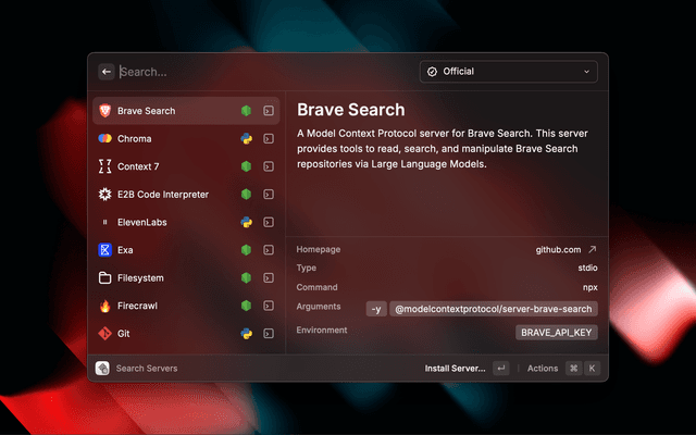 Brave SearchA Model Context Protocol server for Brave Search. This server provides tools to read, search, and manipulate Brave Search repositories via Large Language Models.