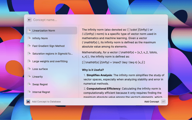 Are your ChatGPT interactions getting lost in endless threads? The Adding a Concept feature lets you effortlessly transfer responses from ChatGPT to a designated Notion database. Simply choose a name for the concept, and let the extension handle the rest.