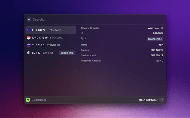 The extension requires a Wise API key for your account to fetch personal information. Only the READ-ONLY version of the key is recommended as this extension does not perform any operation.
