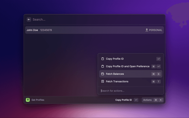 The Main Profile ID can be configured later, it is only required when running the Display Balances and Today's Transactions menu bar command or the Get Balances/Get Transactions without a Profile ID. The ID can be set by first running the Get Profiles and using the shortcut to Copy Profile ID and Open Preference and paste it onto the Main Profile ID field.