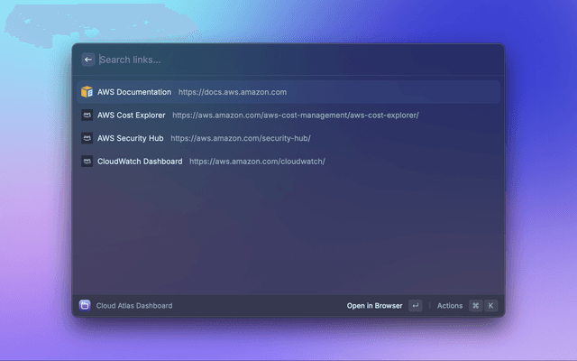 Cmd + N)Cmd + N)Cmd + N: Create new project/linkCmd + E: Edit project/linkCmd + C: Copy link URLCmd + Shift + O: Open all linksCmd + Shift + Backspace: Delete itemIf you encounter any issues or have suggestions, please file them in the Raycast Extensions Repository.