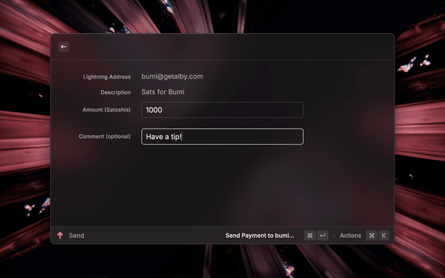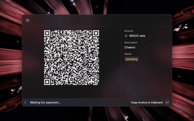Vortex lets you control a Nostr Wallet Connect (NWC) lightning wallet directly from Raycast.