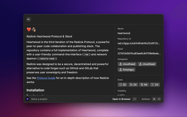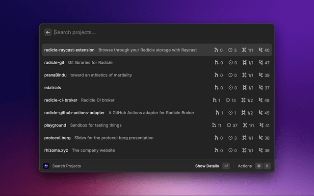 • List all the projects you have in your local Radicle storage