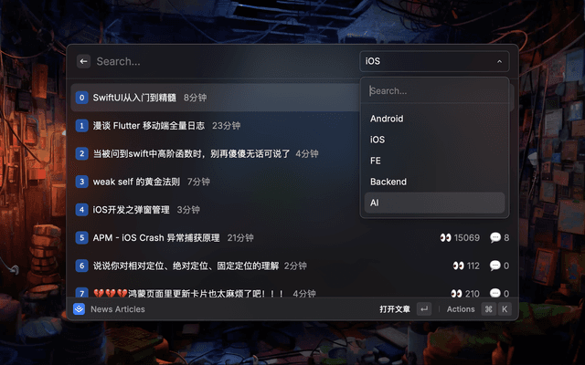 Display recommended articles under each category of Nuggets, and support the selection and switching of different types of articles