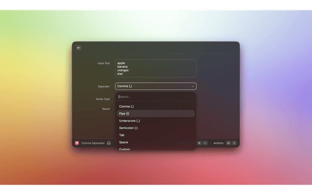 A Raycast extension to convert text into separated values with customizable delimiters and quote options.