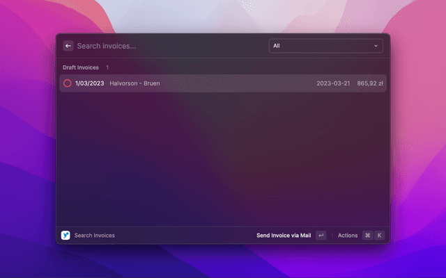 Search, create and manage invoices, clients and products in inFakt directly from Raycast.