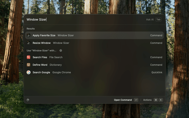 • To resize windows, please allow Raycast to control your Mac under System SettingsPrivacy & SecurityAccessibility