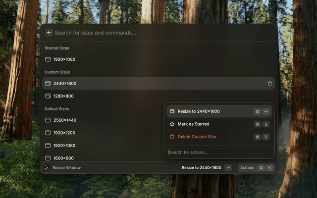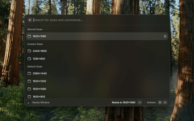 • Quickly resize a window to predefined sizes
