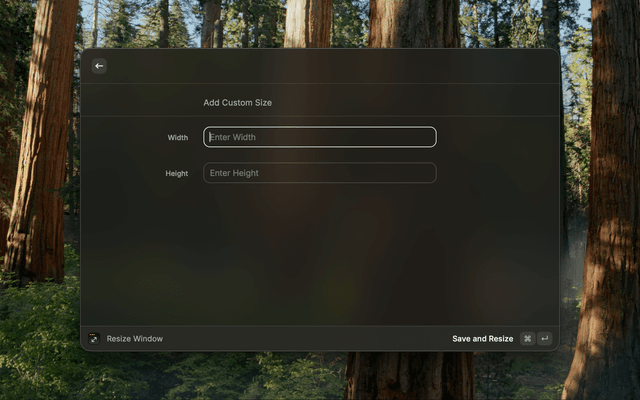 resize window add custom sizes list actions other options