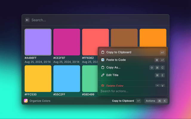 5. Cross-App Compatibility: Thanks to our API, the Color Picker can seamlessly interact with other Raycast extensions.