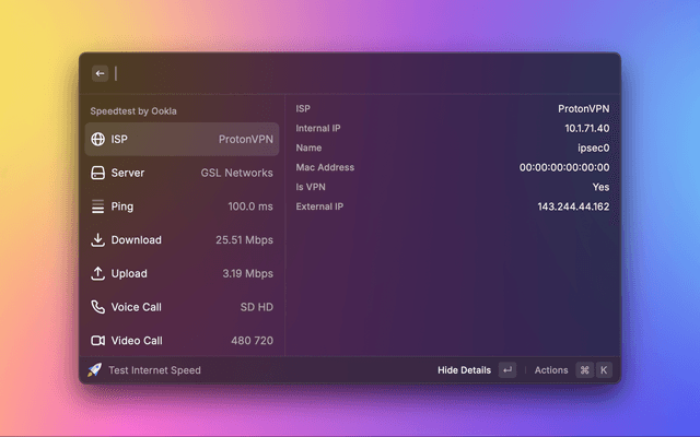 Raycast Speedtest gives you the real-time data you need to: