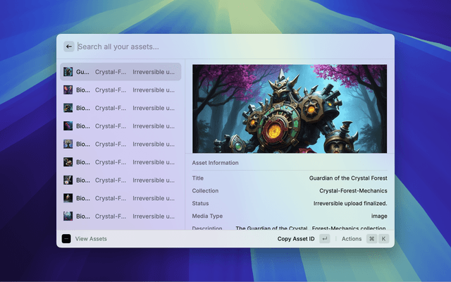 Manage your Uranium NFT collections and assets directly from Raycast. This extension allows you to mint, list, and manage your digital assets and collections on the permaweb without leaving your workspace.