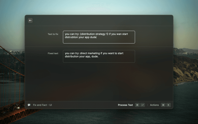 Refine your writing effortlessly and very fast. Grammaring subtly corrects your text, keeping your unique voice intact, like a personal editor who knows your style. Need to remember a quick fact? Just ask within {curly braces} and watch it seamlessly appear in your sentence. Write smarter, not harder, with your words, perfected.