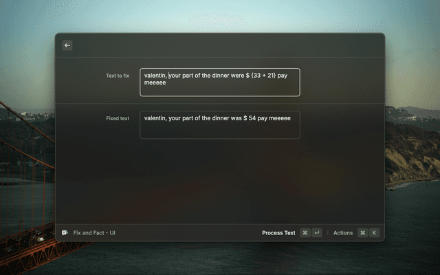 Write inside {curly braces} the facts, questions, math calculations, or anything you want to fill in the text, then run the shortcut. Grammaring will fill the text with what you asked for.