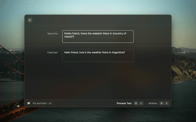 4. When you first run a Grammaring command, Raycast will prompt you to enter this API key in the extension preferences