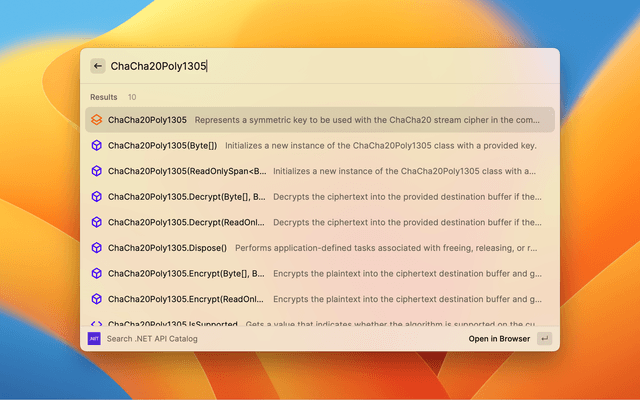 Quickly search the .NET API catalog.