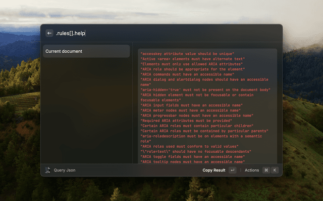 As simple as opening Raycast, typing jq and pressing ⌘ + V to load JSON content from clipboard or ⌘ + O to open Finder and select a file.