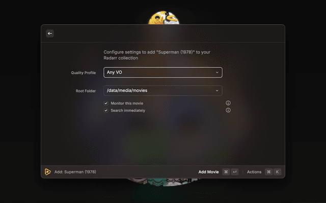 A comprehensive Raycast extension that provides full integration with your Radarr instances, allowing you to search, monitor, and manage your movie collection directly from Raycast.