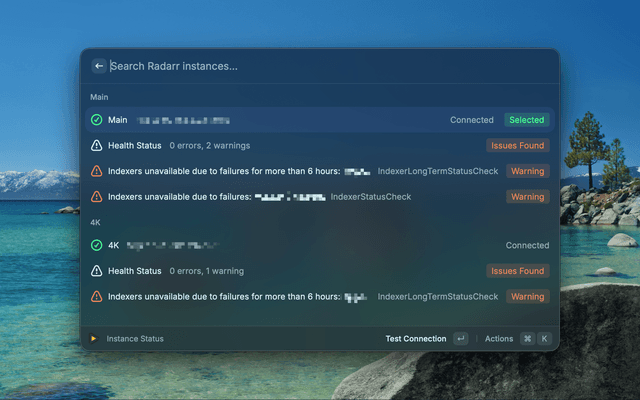 | Instance Status | Monitor connection status of your Radarr instances |
