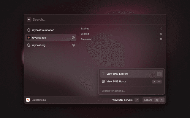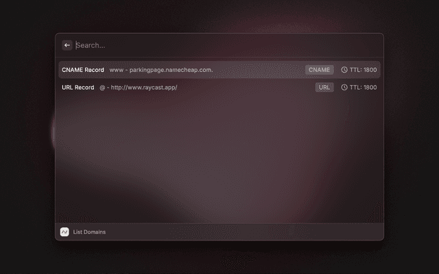 This is a Raycast extension for Namecheap. With this extension, you can fetch your domains, view DNS and NS.