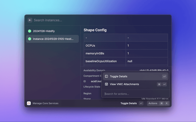 This is a Raycast extension for Oracle Cloud. With this extension you can: